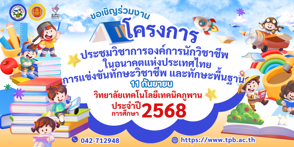 ขอเชิญชวนร่วมงาน ประชุมวิชาการองค์การนักวิชาชีพ Posted on 24 ตุลาคม 202524 ตุลาคม 2025 by รุ่งกิจ พานิชพันธุ์ ขอเชิญชวนเข้าร่วมกิจกรรม ในวันที่ 11 กันยายน 2568 ณ หอประชุมภูพานพิงค์ วิทยลัยเทคโนโลยีเทคโนโลยีเทคนิคภูพาน จังหวัดสกลนคร Posted in ประชาสัมพันธ์.