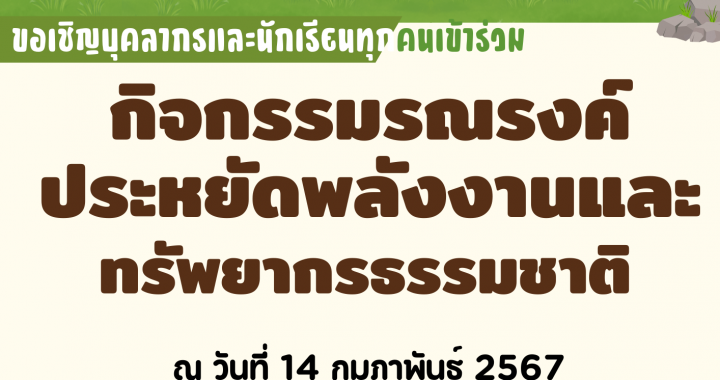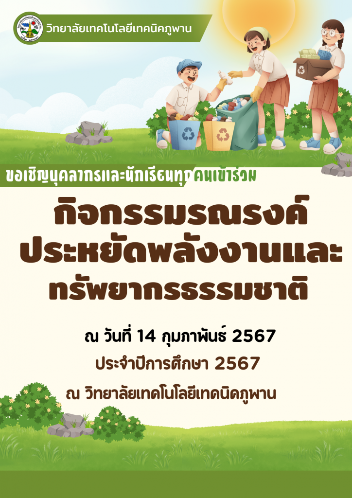 เชิญชวนเข้าร่วม กิจกรรมรณรงค์ประหยัดพลังงานและทรัพยากรธรรมชาติ Posted on 24 ตุลาคม 202524 ตุลาคม 2025 by รุ่งกิจ พานิชพันธุ์ ขอเชิญชวนเข้าร่วมกิจกรรม ในวันที่ 14 กุมภาพันธ์ 2568 ณ วิทยลัยเทคโนโลยีเทคนิคภูพาน จ.สกลนคร Posted in ประชาสัมพันธ์.